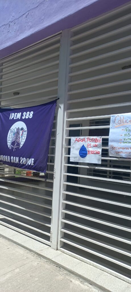 Otro de los puntos críticos es la falta de sanitarios adecuados. La escuela fue diseñada para 200 estudiantes, pero hoy alberga casi 400. “Los baños no dan abasto”, remarcó Gómez, y agregó que el personal docente se ve obligado a usar el baño para personas con discapacidad porque “nunca construyeron un baño para docentes”.