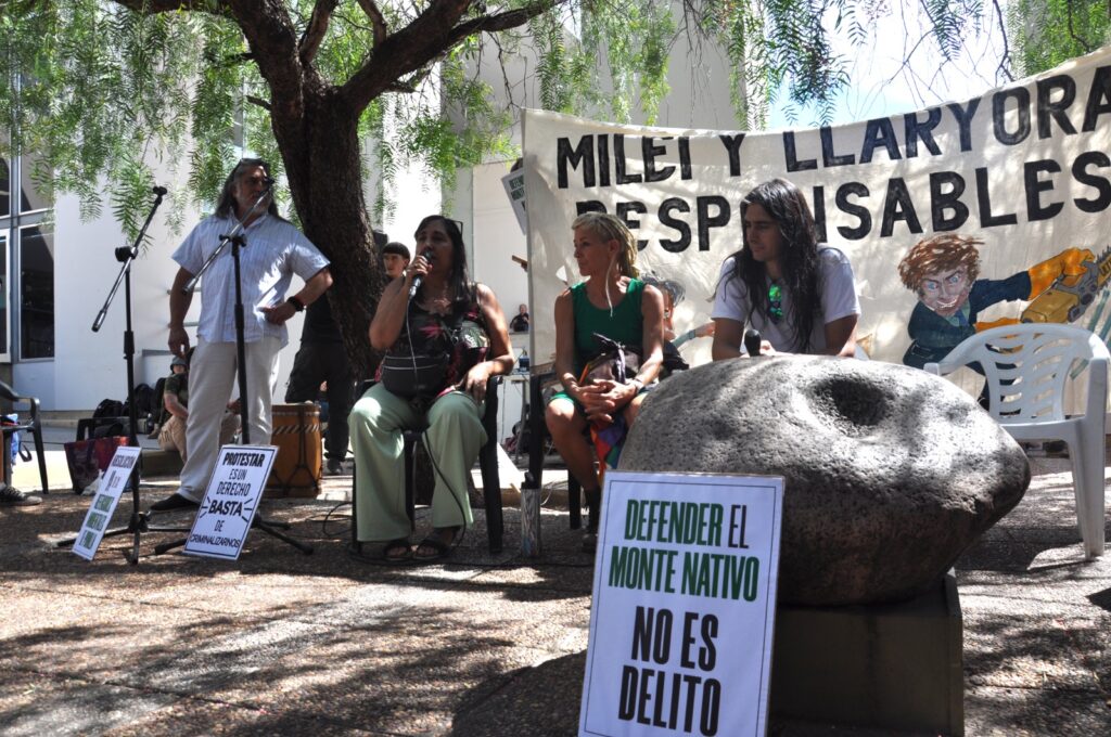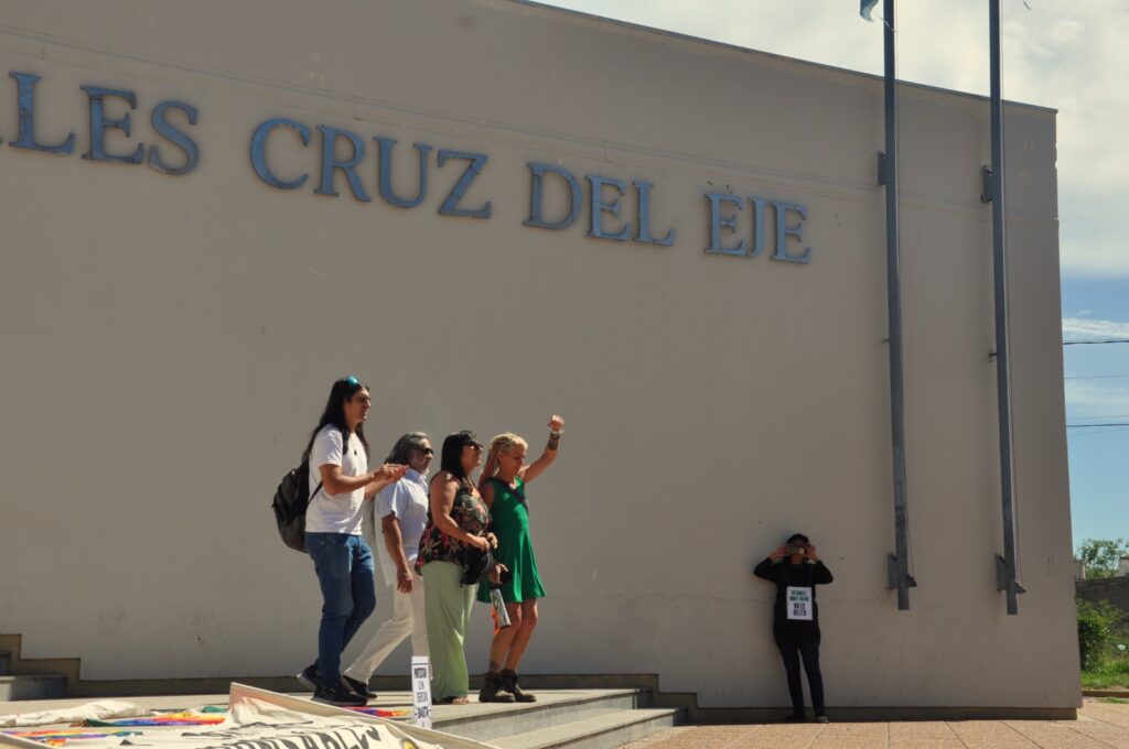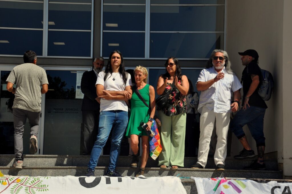 (Fotos: Eugenia Marengo) Los Tribunales de Cruz del Eje fueron escenario, el pasado jueves 18 de diciembre, de una audiencia preliminar en el marco de la causa judicial impulsada por el exintendente de Cosquín, Gabriel Musso, contra seis defensorxs ambientales, imputados por presuntas amenazas durante una acción de protesta ocurrida en agosto de 2022.