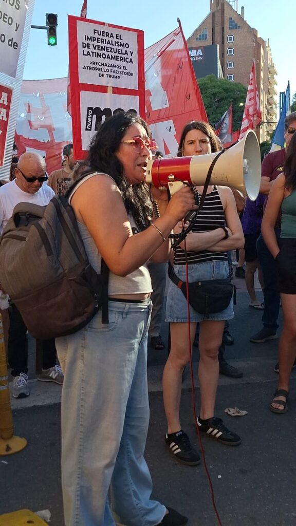 Noelia Agüero, dirigente de Izquierda Socialista, expresó su rechazo a lo que calificó como “una acción criminal contra el pueblo trabajador venezolano” y llamó a la movilización popular a nivel mundial. “Llamamos a los pueblos del mundo a las calles, a repudiar, a estar presentes, a decirle no a la influencia yanqui”, afirmó, al tiempo que cuestionó a sectores políticos locales por acompañar las políticas del expresidente estadounidense Donald Trump.
